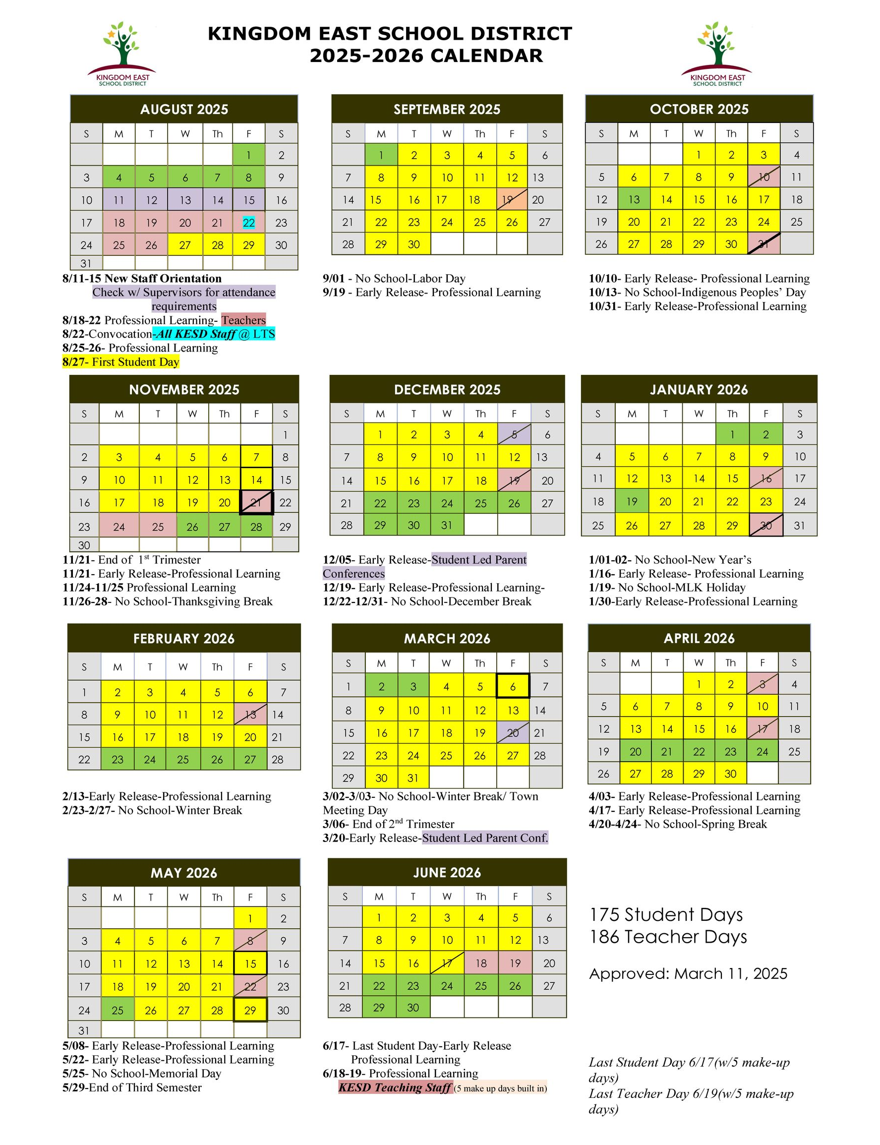Friday, March 20, 2026 (Student Led Parent Conferences)