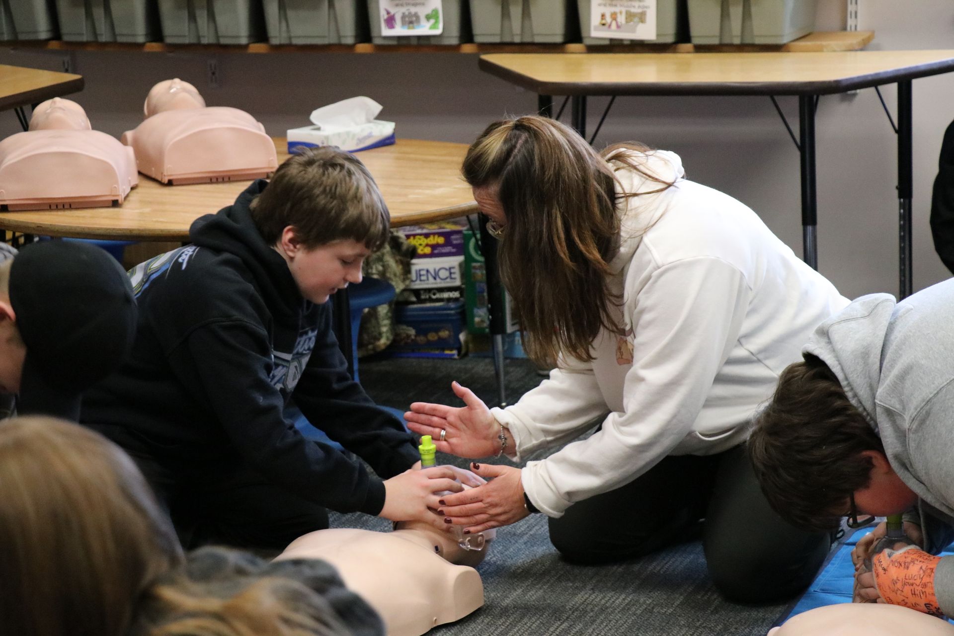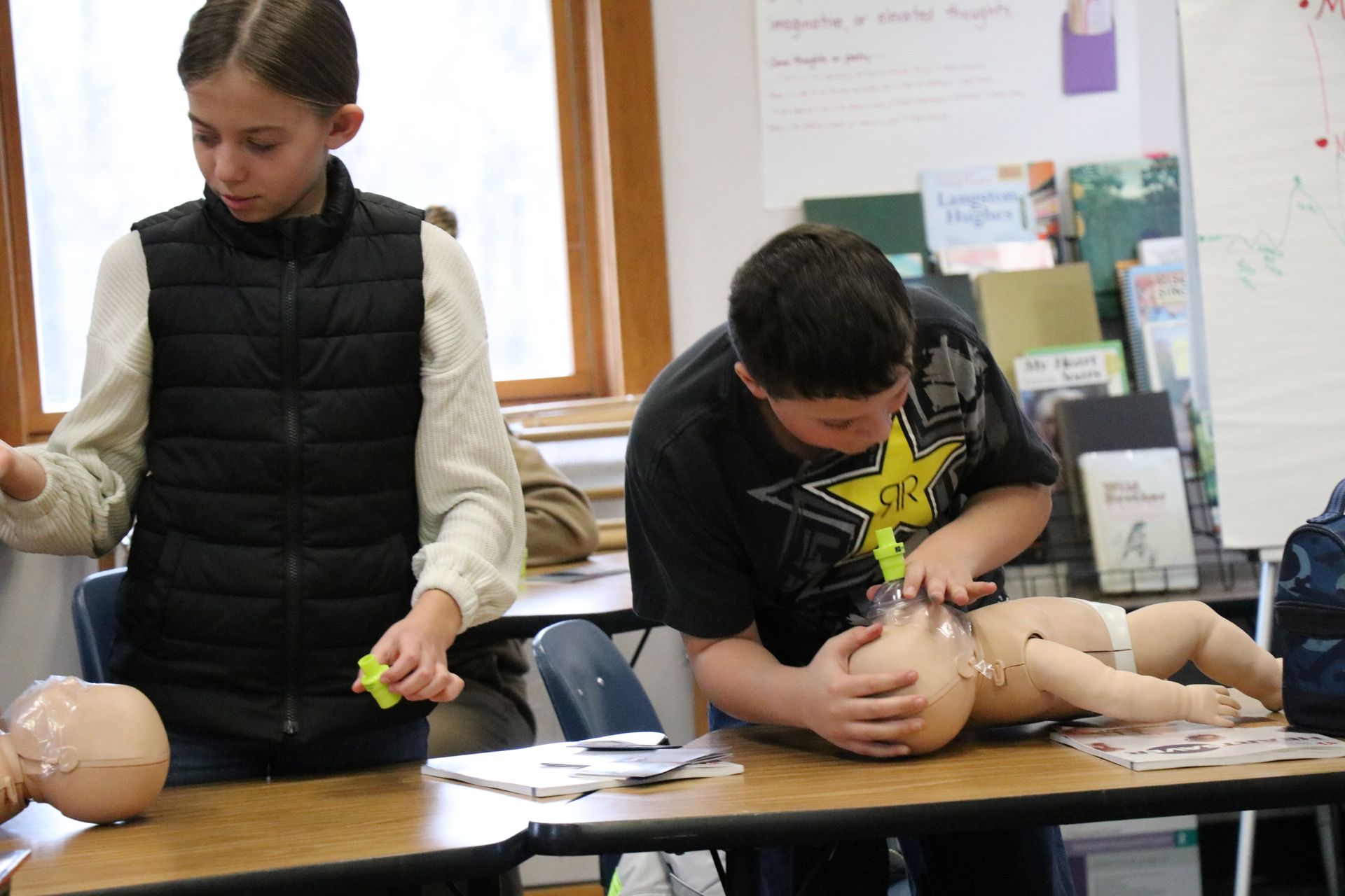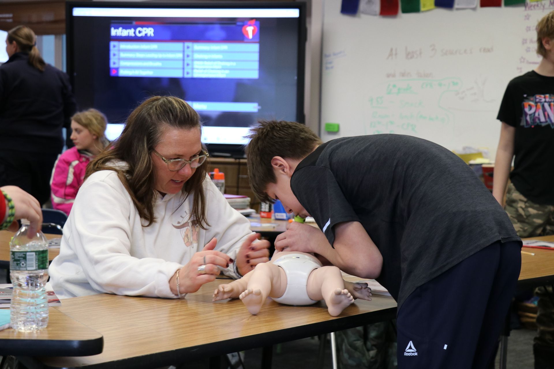 Last year ÐÓ°ÉÊÓÆµ East received a grant and was able to purchase equipment to certify students and staff in First Aid/CPR/AED. On Tuesday, February 13th Concord School 6th graders completed their training session and received their certifications.