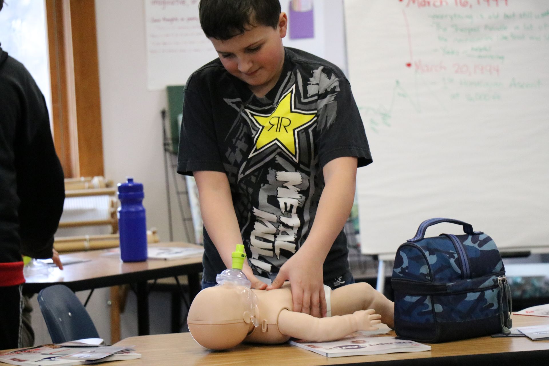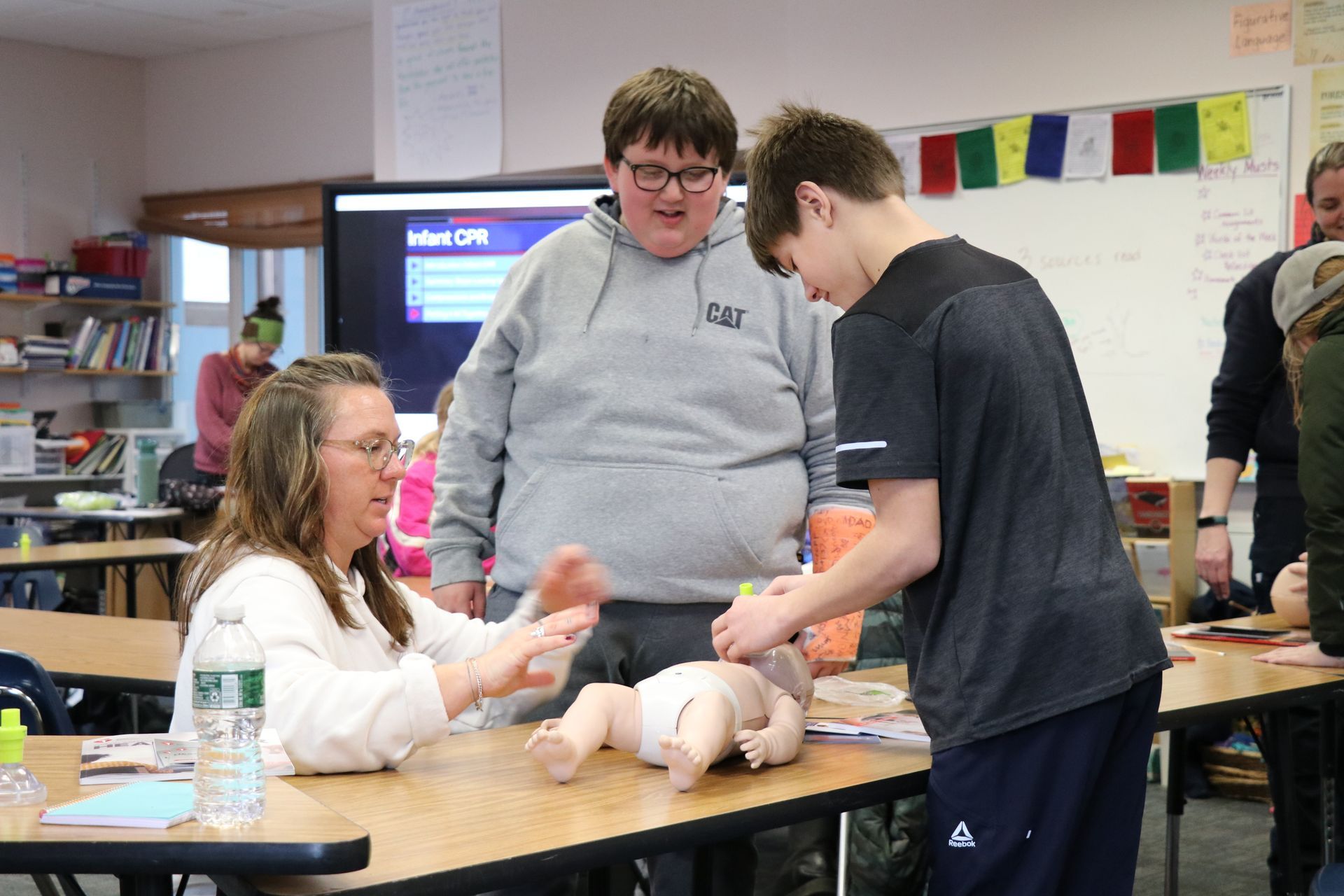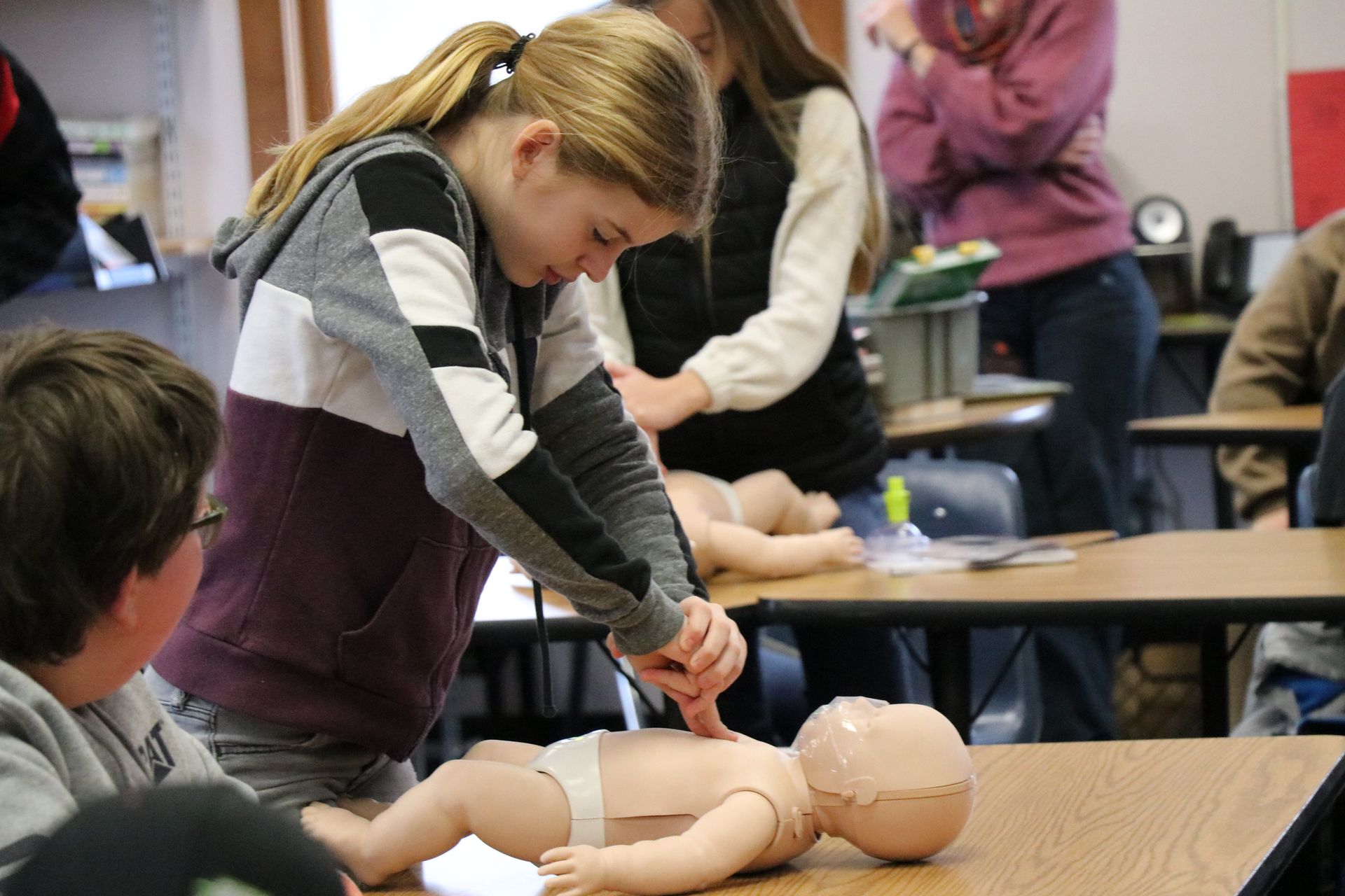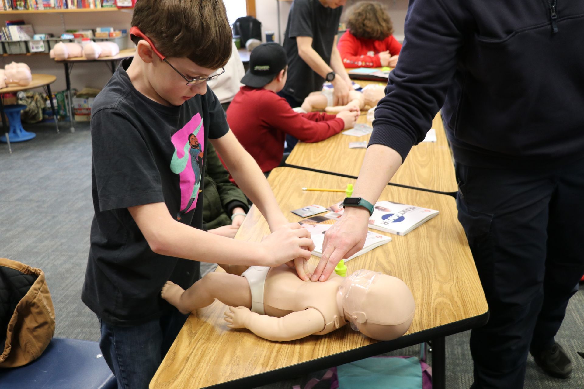 Last year ÐÓ°ÉÊÓÆµ East received a grant and was able to purchase equipment to certify students and staff in First Aid/CPR/AED. On Tuesday, February 13th Concord School 6th graders completed their training session and received their certifications.